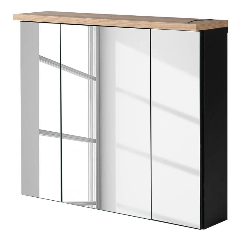 - 3 portes en bois avec miroir renfermant chacune 1 tablette