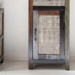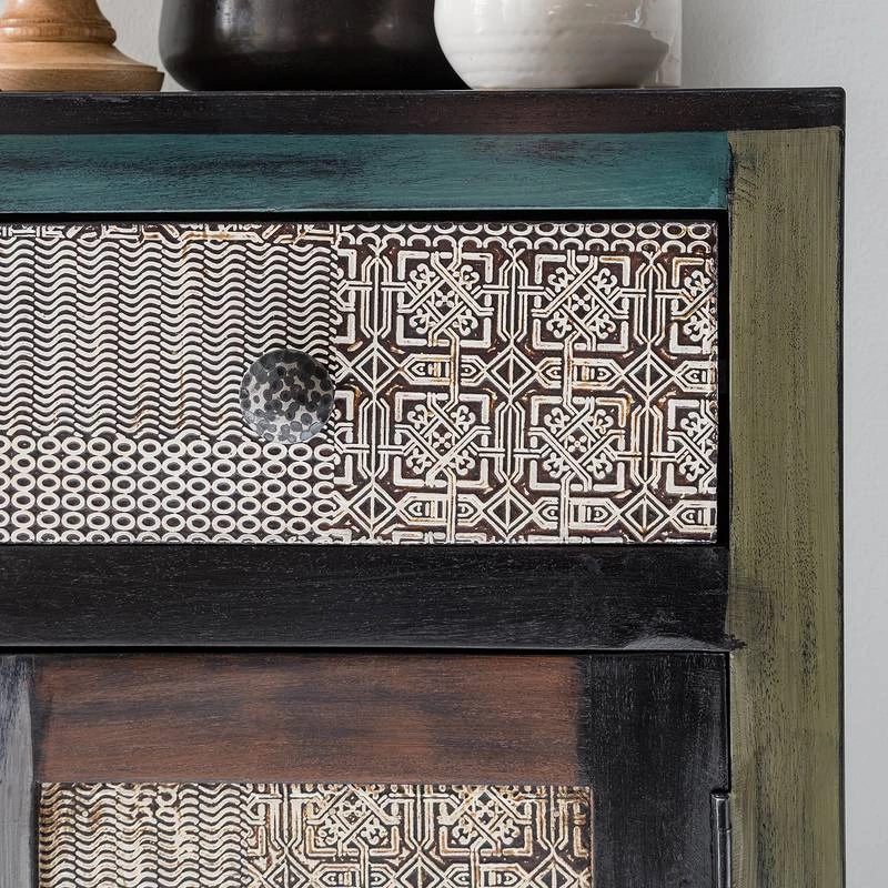 - Eléments de la façade : panneau MDF (panneau de fibres de bois de densité moyenne) avec éléments décoratifs métalliques
