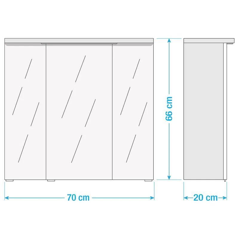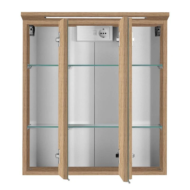 - 3 portes miroir avec amortisseurs d’ouverture, renfermant 6 tablettes en verre