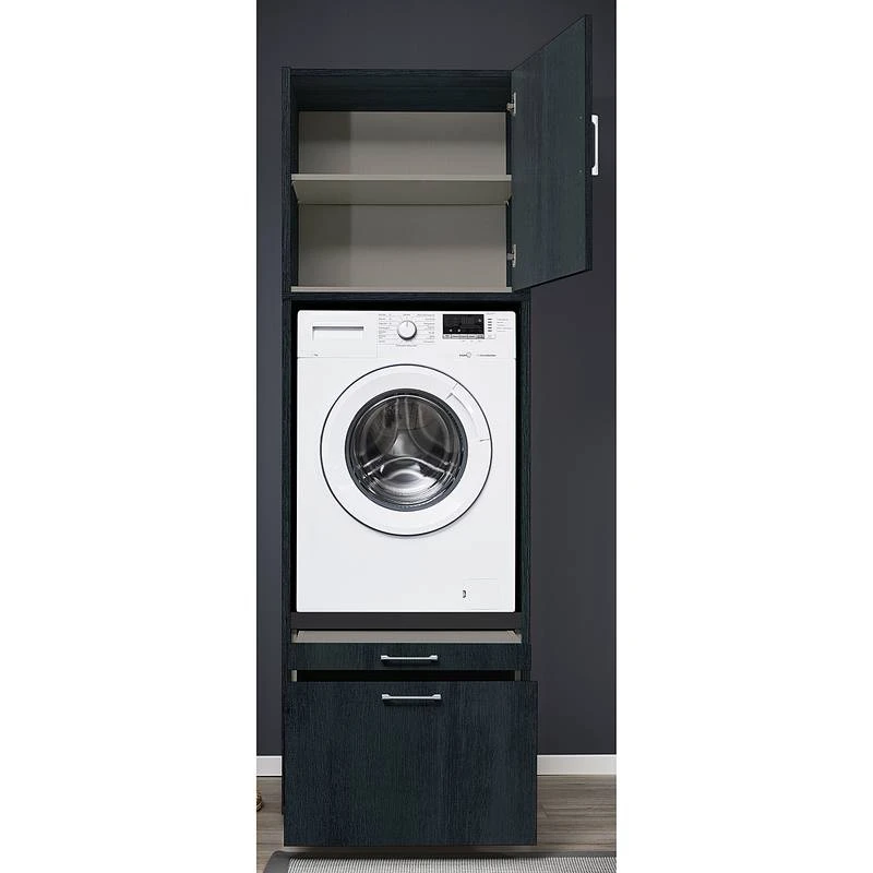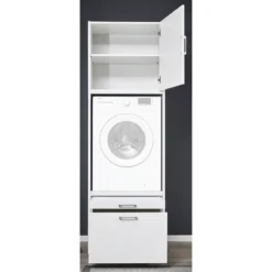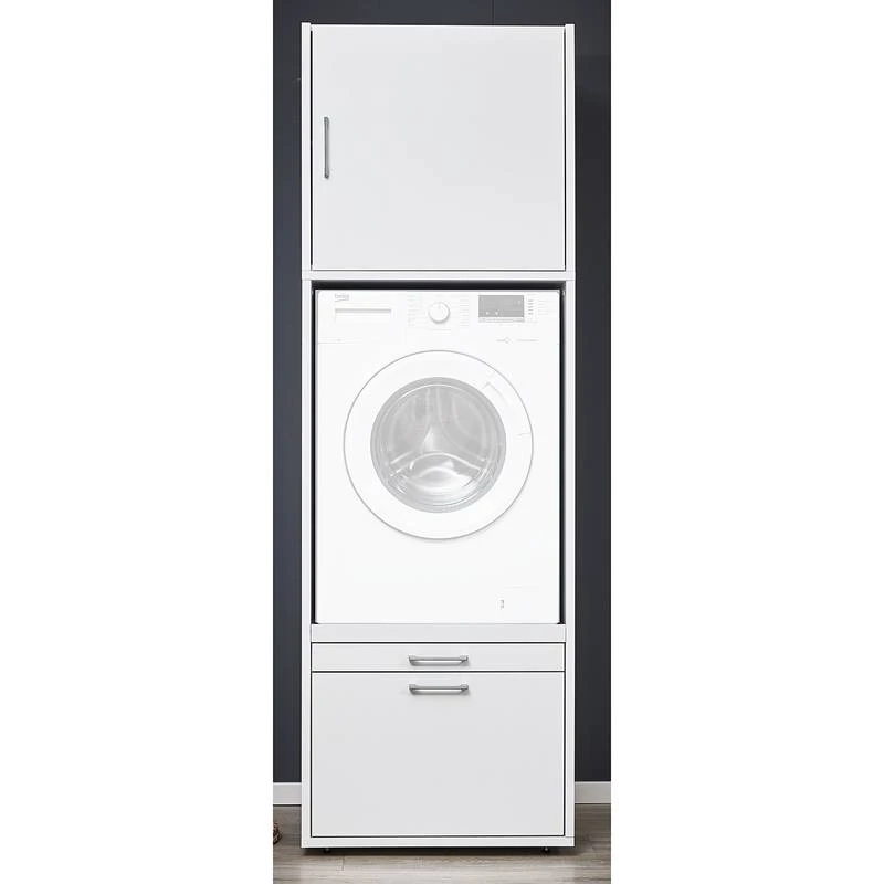 - Ensemble composé de 1 armoire pour lave-linge avec tablette rétractable et 1 caisson haut