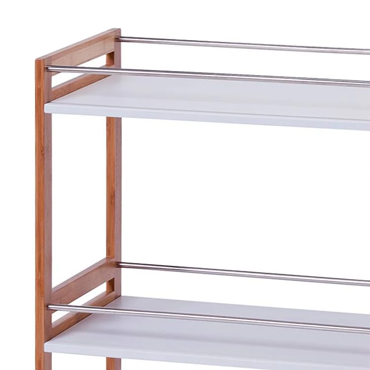 - 3 surfaces de rangement avec barres en bois Ă l’avant et Ă l’arrière