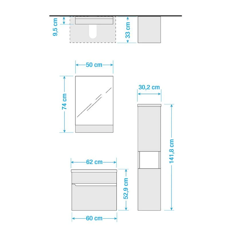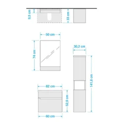 - Autres dimensions : Meuble sous lavabo (LxHxP) : 60 x 53 x 33 cm