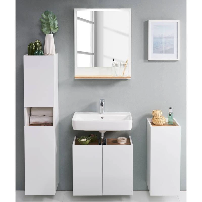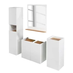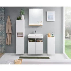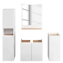 - Ensemble de salle de bain comprenant 1 meuble sous lavabo, 1 meuble bas, 1 colonne de salle de bain et 1 miroir sans éclairage