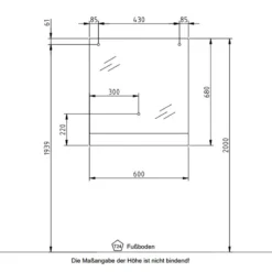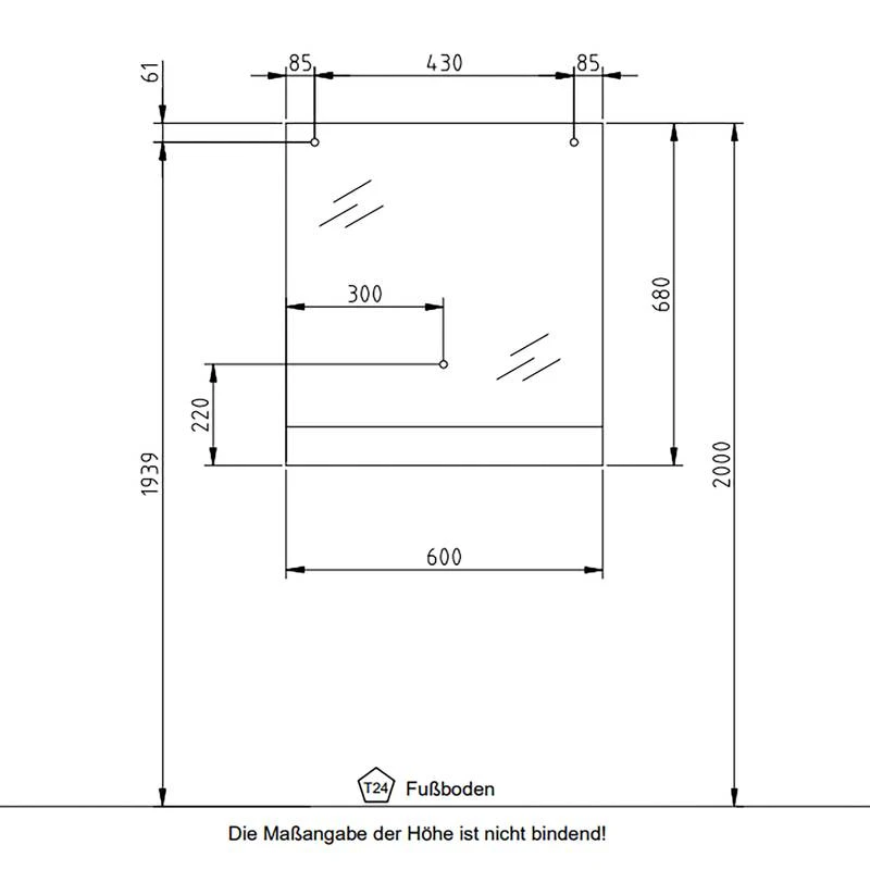 - Miroir (LxHxP) : 60 x 74,5 x 15,5 cm