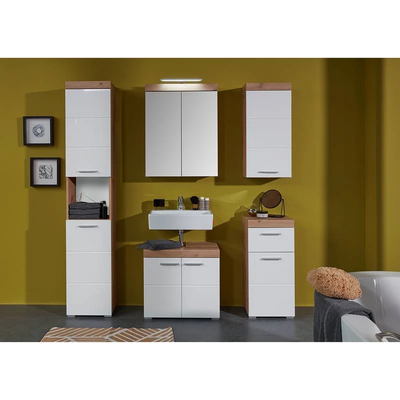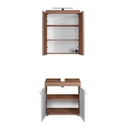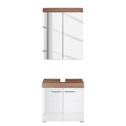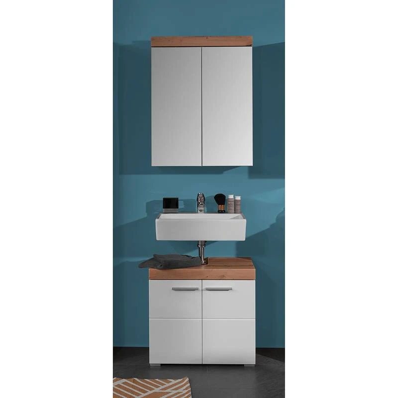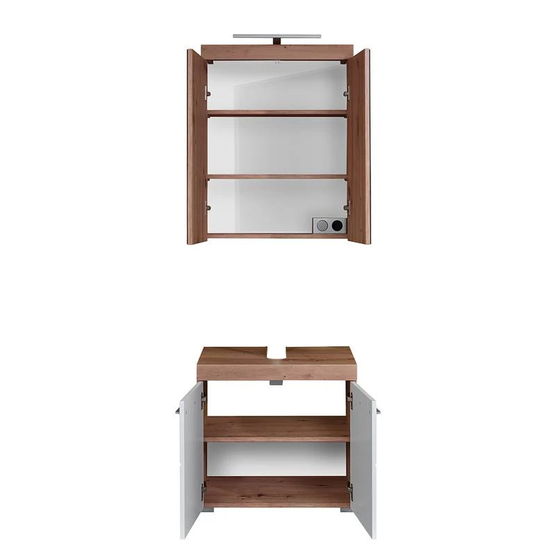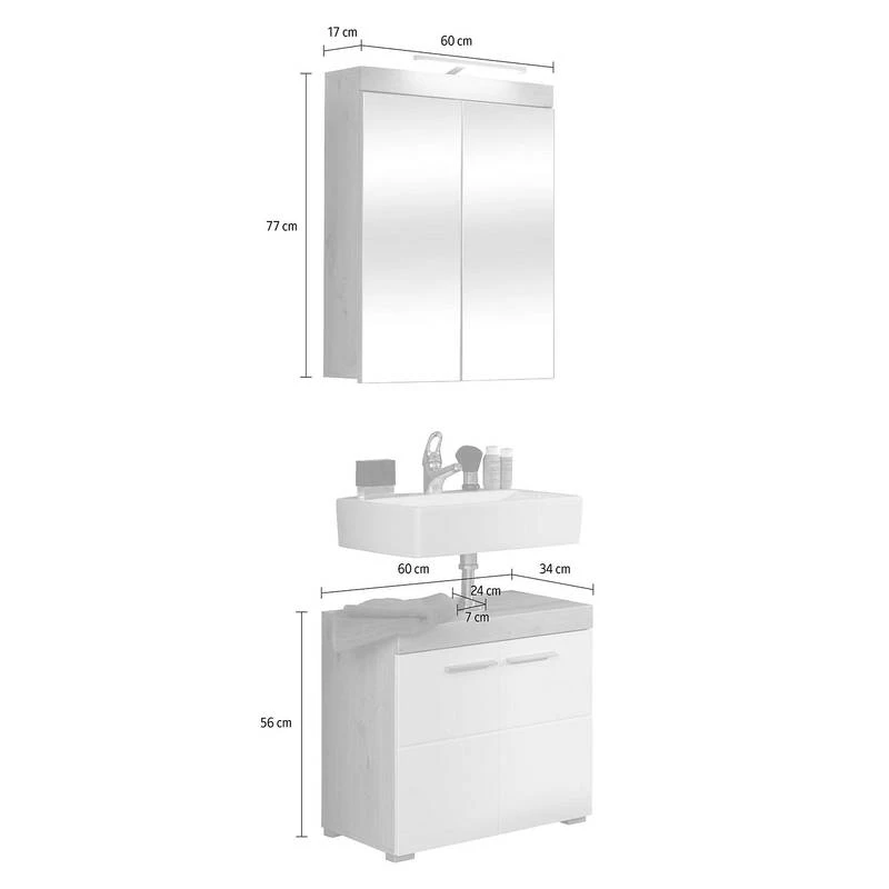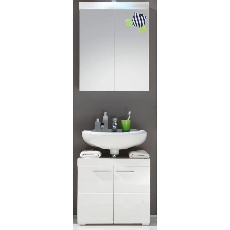 - Contenu de la livraison : 1 armoire de toilette, 1 meuble sous lavabo, sans éclairage ni accessoires