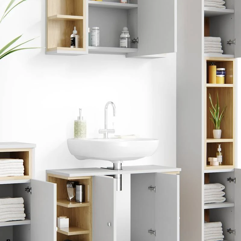 - Contenu de la livraison : • 1x Armoire murale avec miroir • 1x Meuble sous vasque • 1x Demi colonne • 1x Colonne • lot complet avec 4 Ă©lĂ©ments – produit neuf – en kit avec instructions de montage dĂ©taillĂ©es Attention: DĂ©coration et vasque non inclus! Les couleurs et contrastes peuvent diffĂ©rĂ©s de la couleur rĂ©elle selon les rĂ©glages de votre ordinateur.