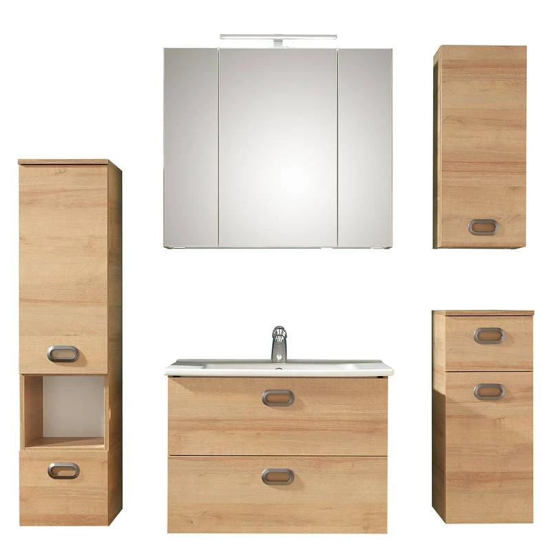 - Contenu de la livraison : Ensemble de salle de bain comprenant 1 meuble avec vasque en céramique, 1 armoire de salle de bain, 1 meuble bas, 1 meuble haut et 1 armoire de toilette avec éclairage
