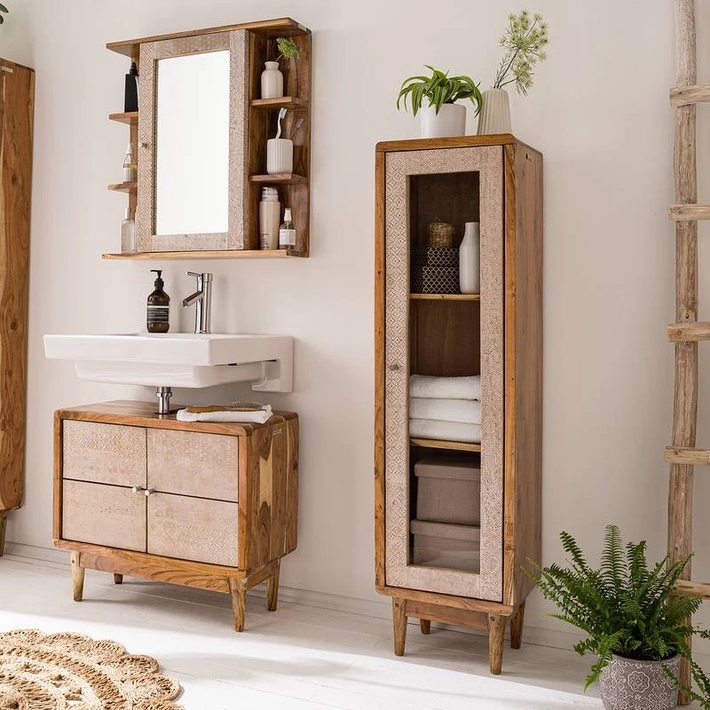 - Contenu de la livraison : 1 armoire de salle de bain, 1 armoire de toilette, 1 meuble sous lavabo et 1 colonne de salle de bain, sans accessoires