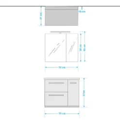 - Armoire de toilette : 70 x 65 x 16 cm