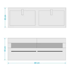 - Meuble avec vasque double (L x H x P) : 120 x 43 x 45 cm