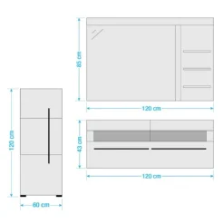- Armoire de salle de bain (L x H x P) : 45 x 120 x 35 cm