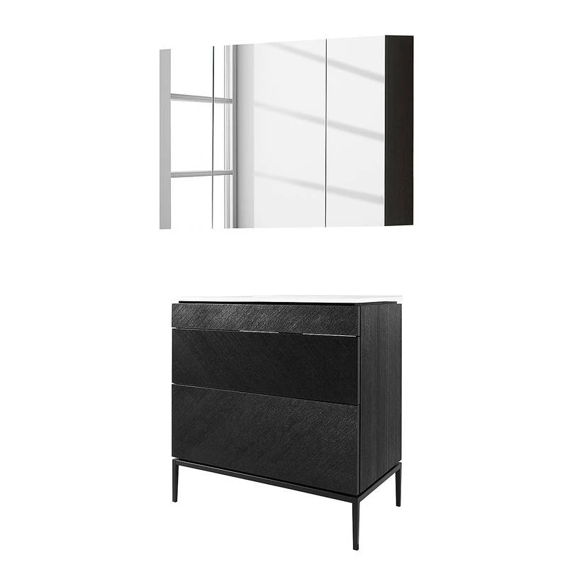 - Contenu de la livraison : Salle de bain comprenant 1 meuble avec vasque en céramique et 1 armoire de toilette sans éclairage