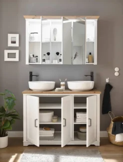 - Armoire de toilette (L x H x P) : 116 x 74 x 25 cm