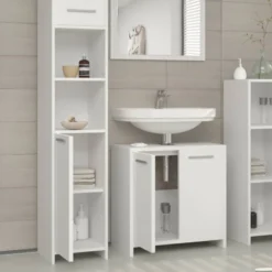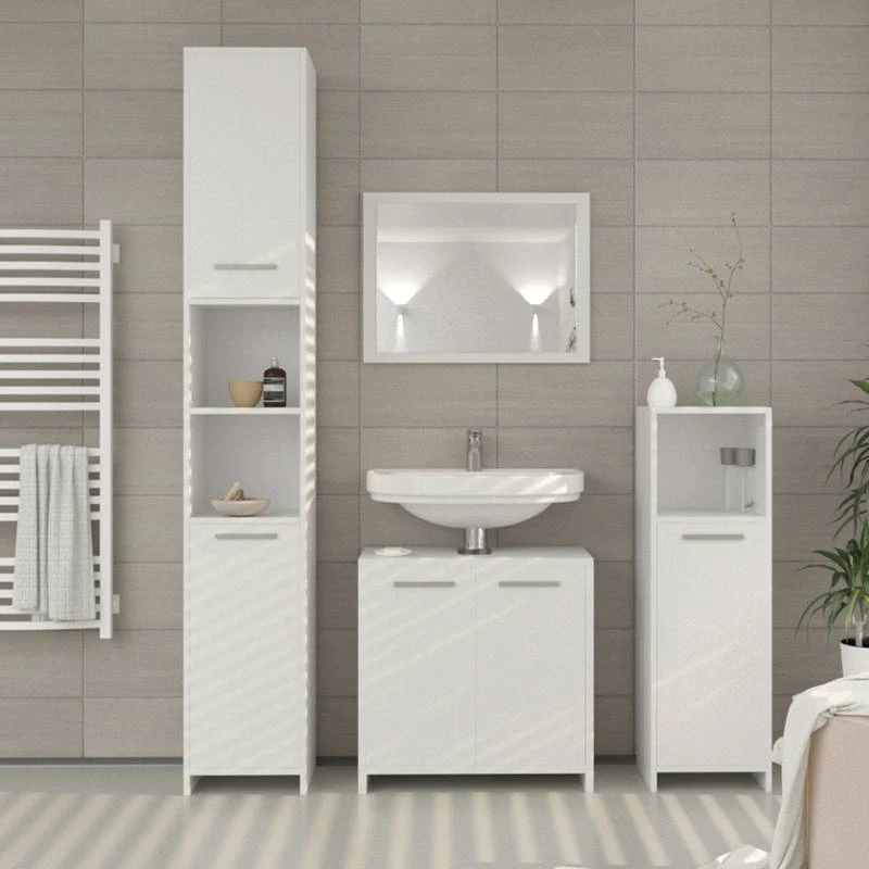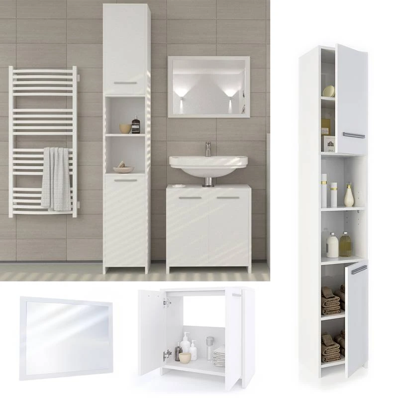- Contenu de la livraison : Contenu de la LIVRAISON • 1x miroir de salle de bain • 1x meuble sous vasque • 1x meuble colonne manuel d’installation siphon et lavabo ne sont pas inclus Attention: Décoration non incluse! Les couleurs et contrastes peuvent différés de la couleur réelle selon les réglages de votre ordinateur.
