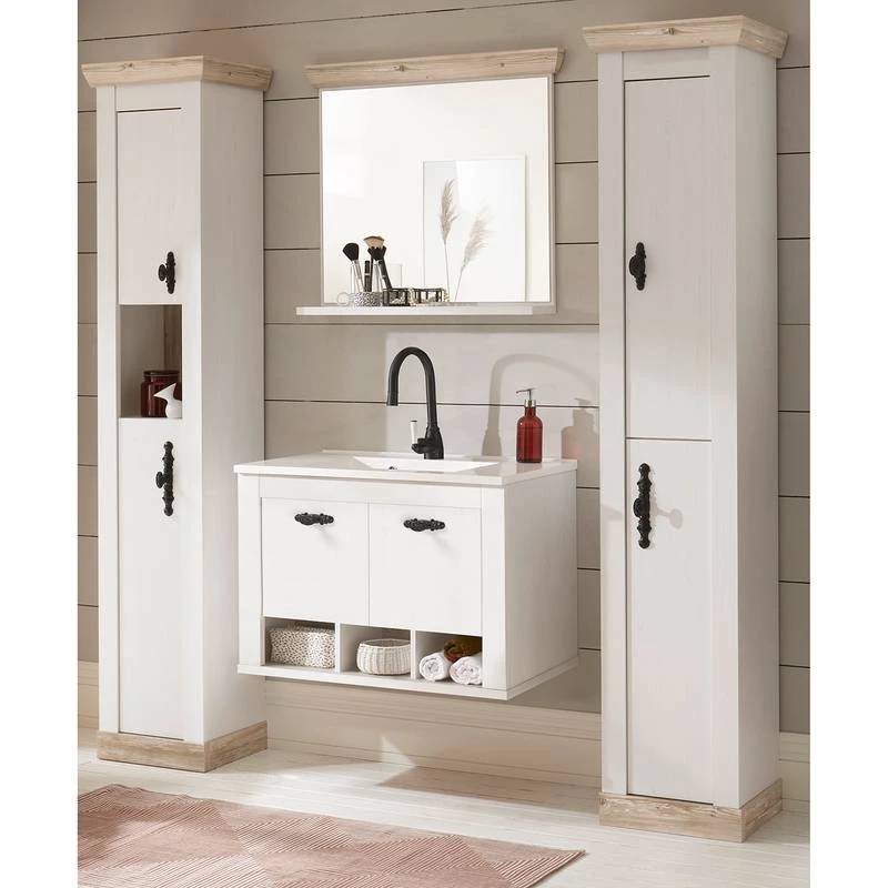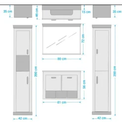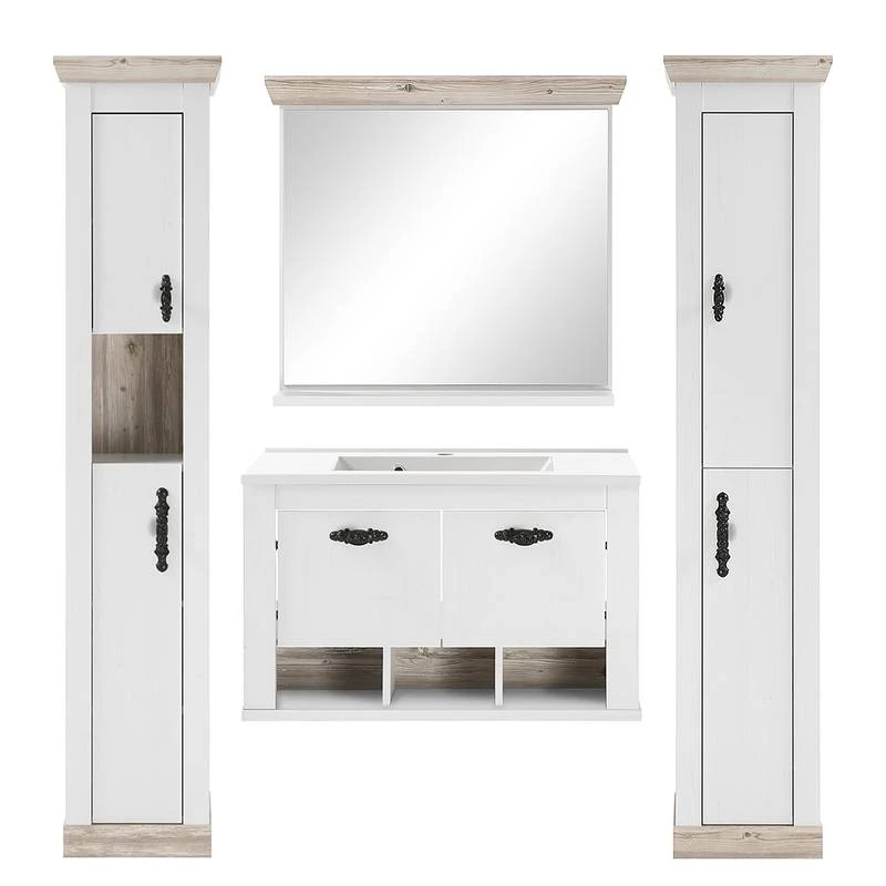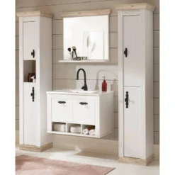 - Contenu de la livraison : Ensemble de salle de bain comprenant 1 meuble sous lavabo, 2 colonnes de salle de bain et 1 miroir