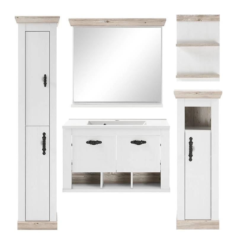 - Contenu de la livraison : Ensemble de salle de bain comprenant 1 meuble sous lavabo, 1 armoire de salle de bain, 1 colonne de salle de bain, 1 étagère murale et 1 miroir
