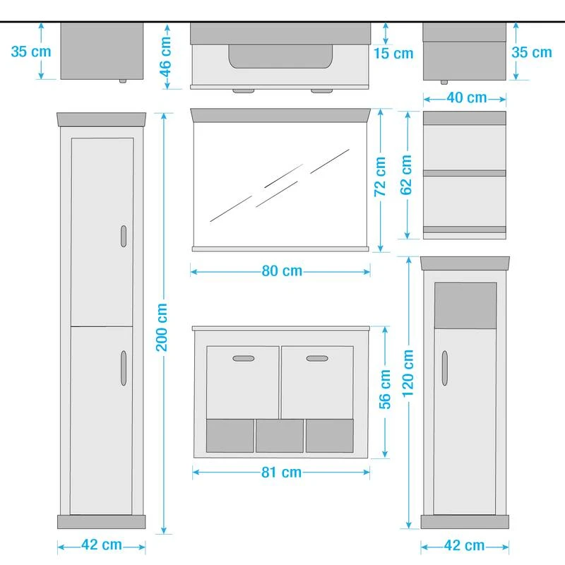 - Armoire de salle de bain (LxHxP) : 42 x 120 x 35 cm