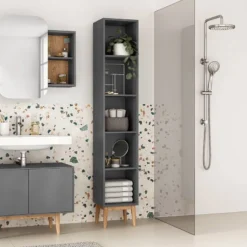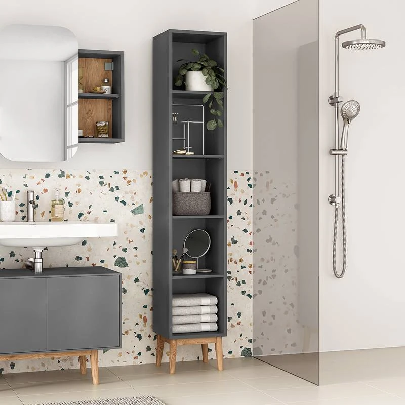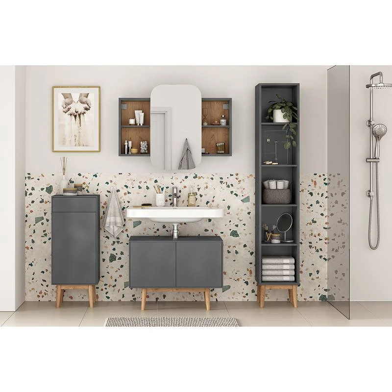 - Contenu de la livraison : Ensemble de salle de bain comprenant 1 meuble sous lavabo, 1 étagère, 1 meuble bas et 1 armoire de toilette