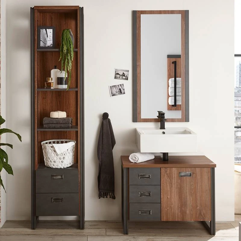 - Contenu de la livraison : Salle de bain comprenant 1 meuble sous lavabo, 1 étagère et 1 miroir