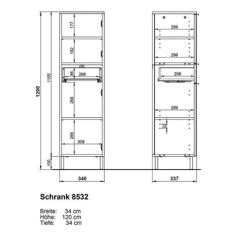 - Colonne de salle de bain : 34 x 120 x 34 cm