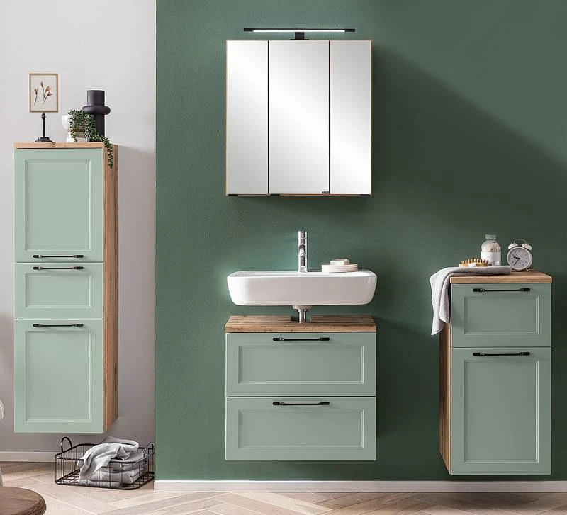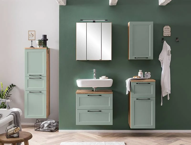 - Ensemble de salle de bain comprenant 1 meuble sous vasque, 1 meuble bas, 1 colonne de salle de bain et 1 armoire de toilette avec éclairage