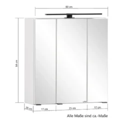 - Armoire de toilette (L x H x P) : 60 x 64 x 20 cm