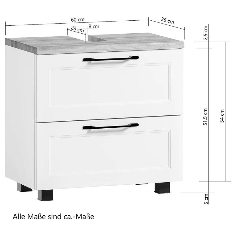 - Meuble sous lavabo (L x H x P) : 60 x 55 x 35 cm