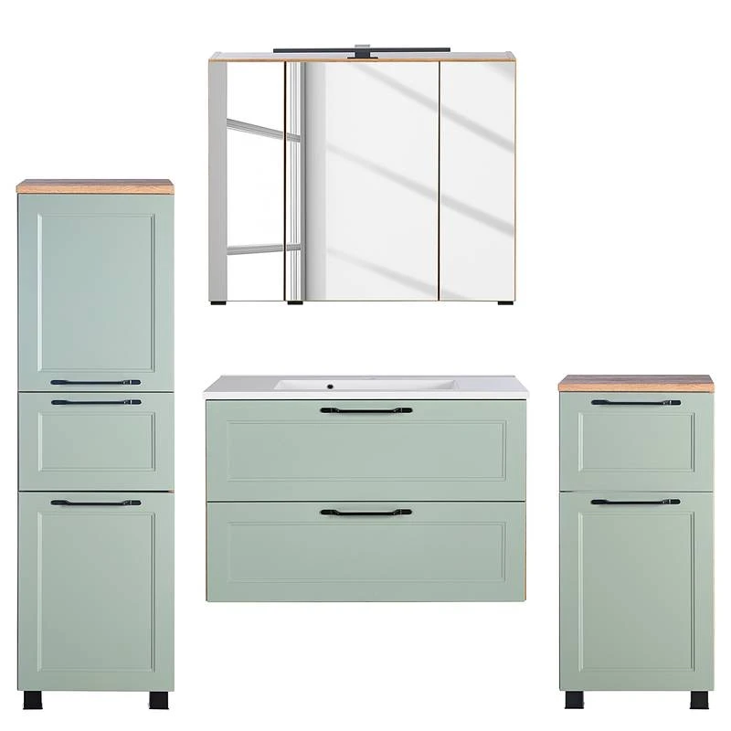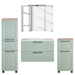- Salle de bain comprenant 1 meuble avec vasque en fonte minérale, 1 colonne de salle de bain, 1 meuble bas et 1 armoire de toilette avec éclairage intégré