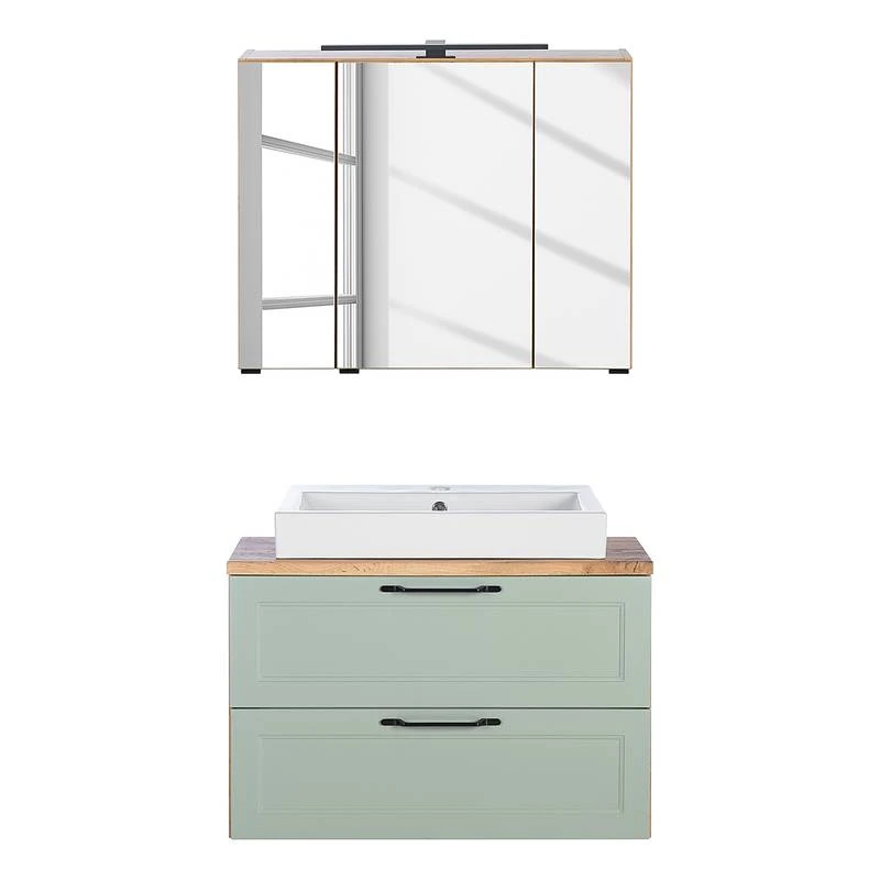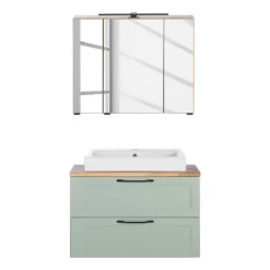 - Contenu de la livraison : Salle de bain comprenant 1 meuble avec vasque en céramique et 1 armoire de toilette avec éclairage