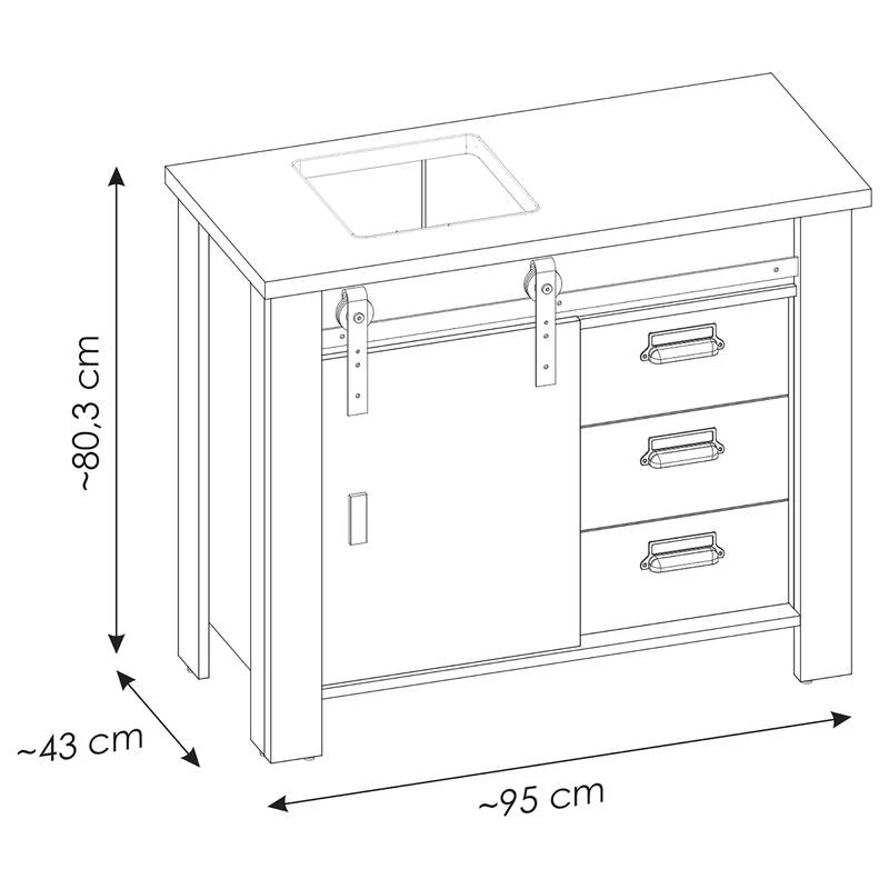 - Meuble avec vasque : 95 x 91 x 43 cm