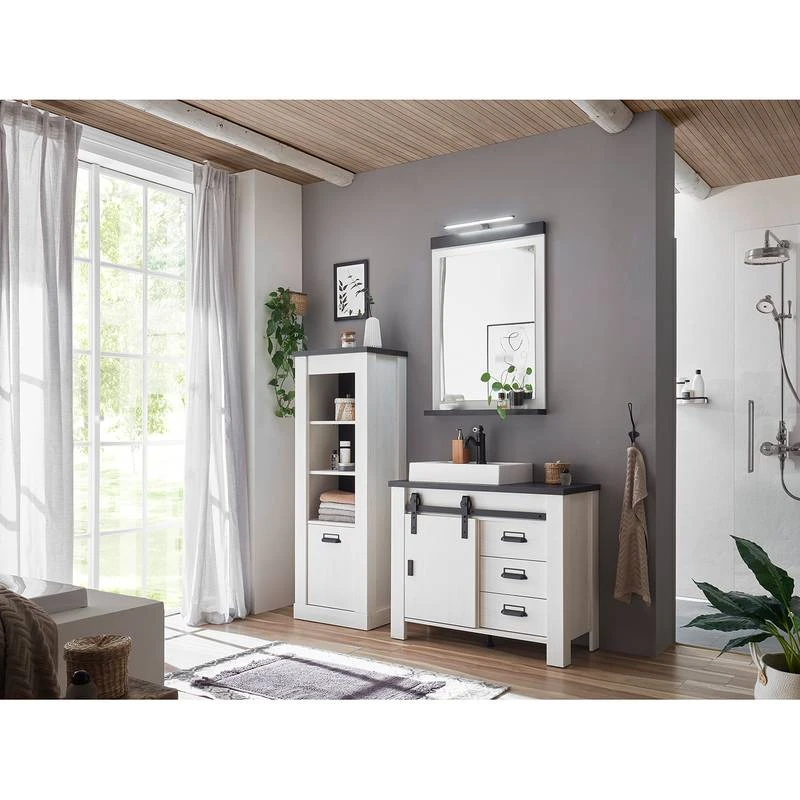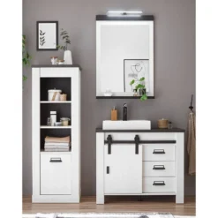 - Contenu de la livraison : Salle de bain comprenant 1 miroir et 1 meuble avec vasque en fonte minérale, avec éclairage et sans accessoires