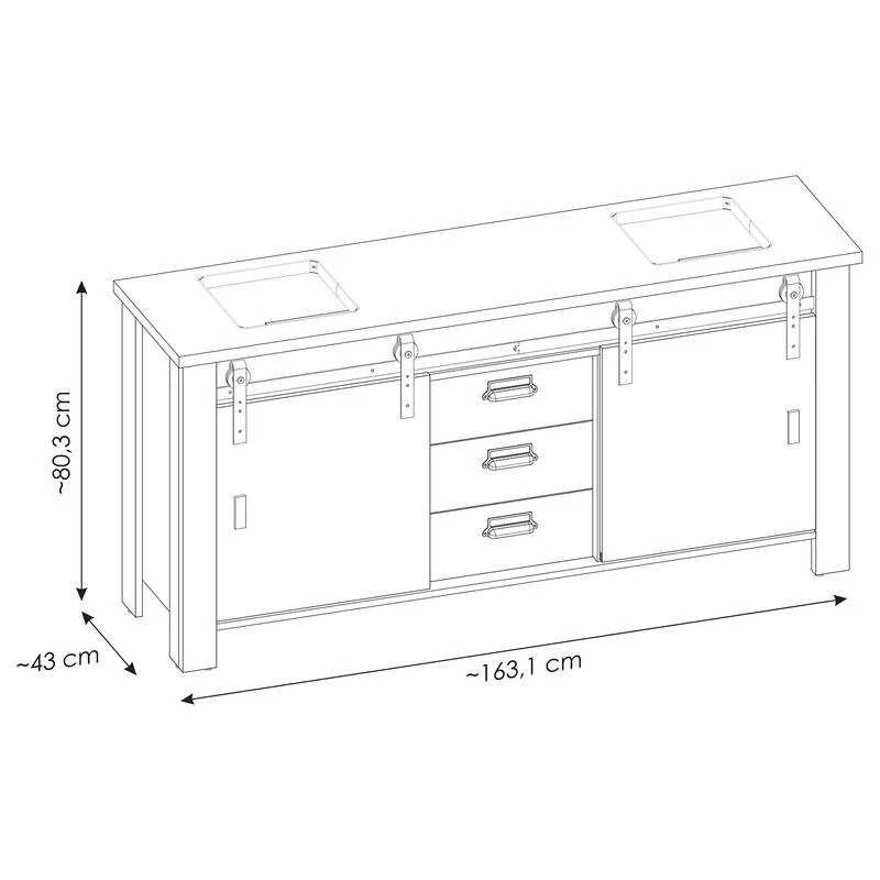 - Meuble avec vasque : 165 x 91 x 43 cm