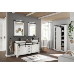 - Contenu de la livraison : Salle de bain comprenant 1 armoire, 2 miroirs et 1 meuble avec vasque en fonte minérale, avec éclairage et sans accessoires
