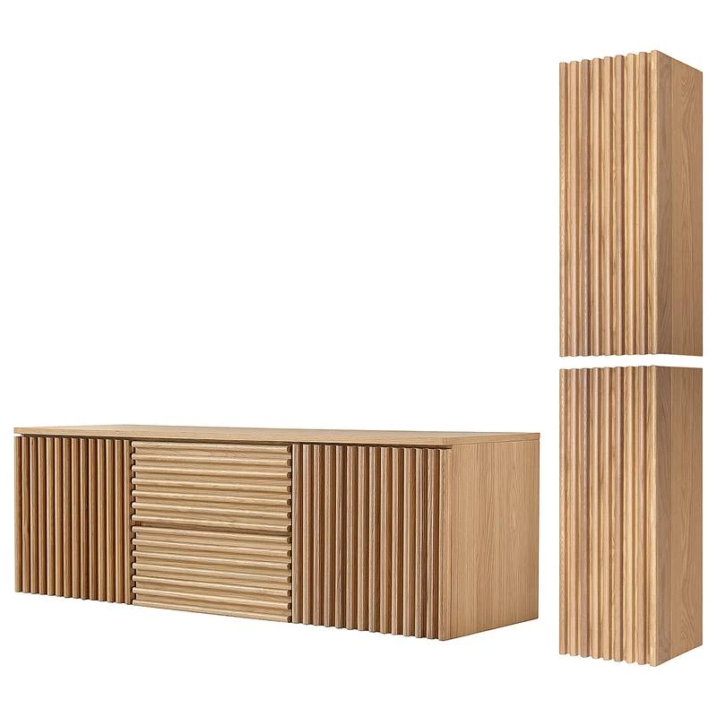 - Contenu de la livraison : Salle de bain comprenant 1 meuble double vasque sans lavabo et 2 meubles hauts sans accessoires