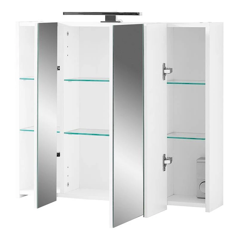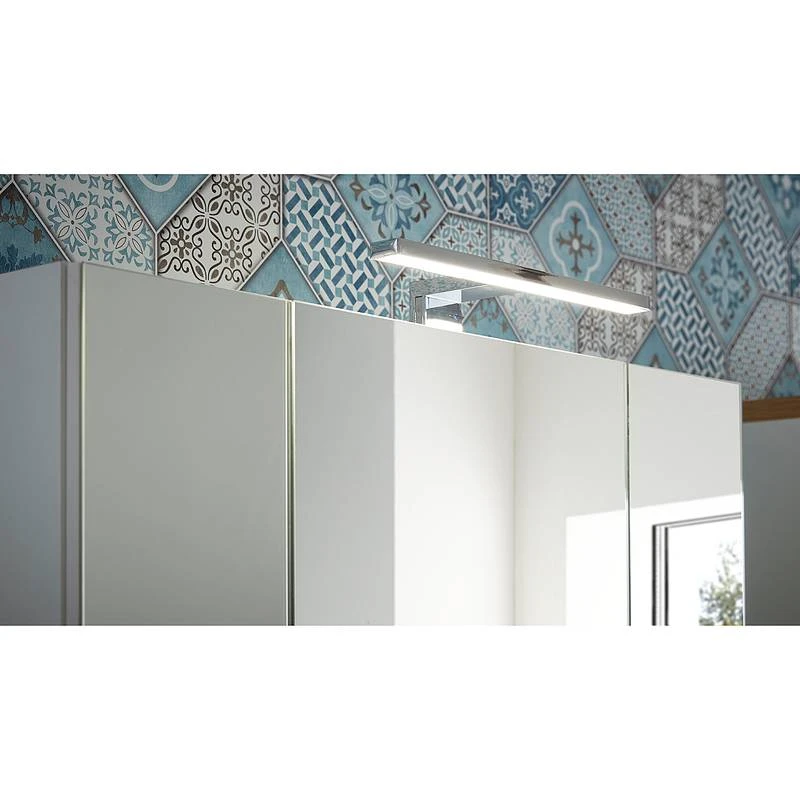 - Contenu de la livraison : Salle de bain comprenant 1 meuble sous lavabo, 1 armoire de toilette avec éclairage inclus, 1 armoire de salle de bain, 1 meuble haut et 1 colonne de salle de bain, sans accessoires
