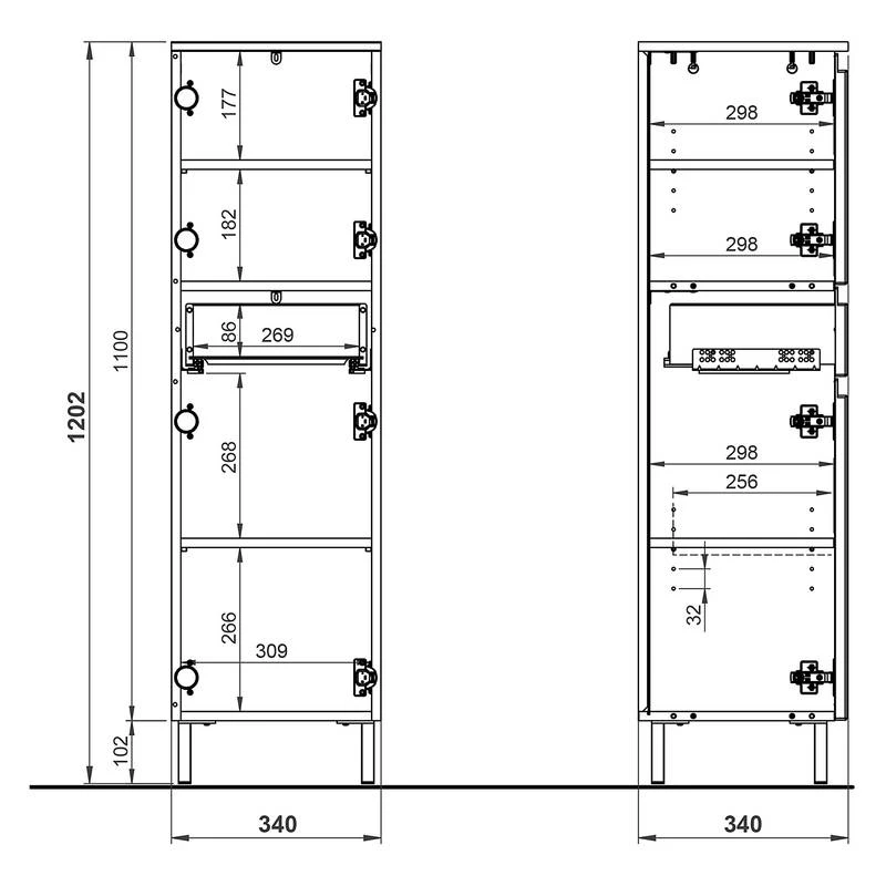 - Armoire de salle de bain : 34 x 120 x 34 cm