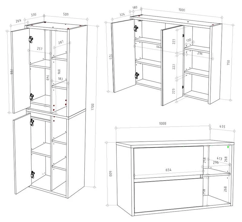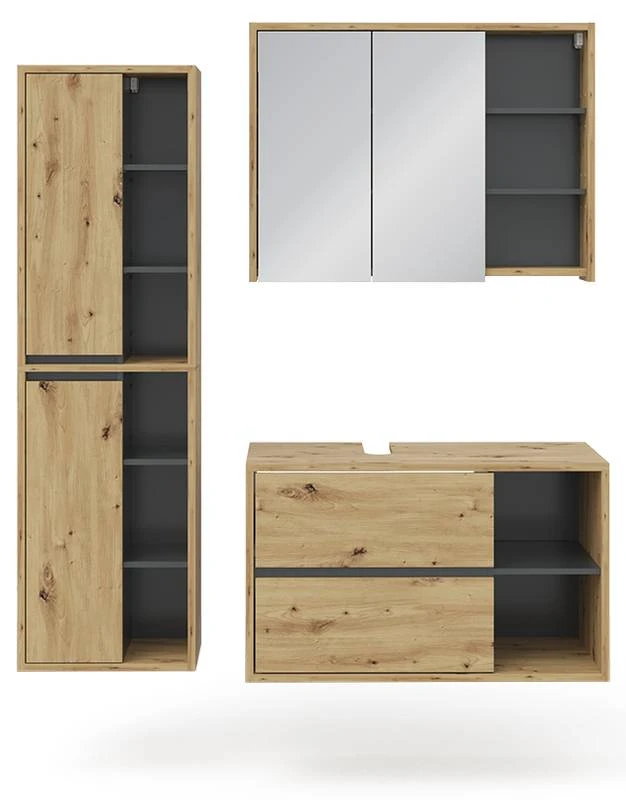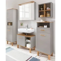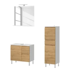 - Contenu de la livraison : • 1x ensemble mobilier avec armoire de toilette, meuble sous-vasque, placard Décoration non incluse