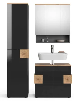 - Contenu de la livraison : • 1x meuble sous-vasque• 1x armoire de toilette Décoration non incluse