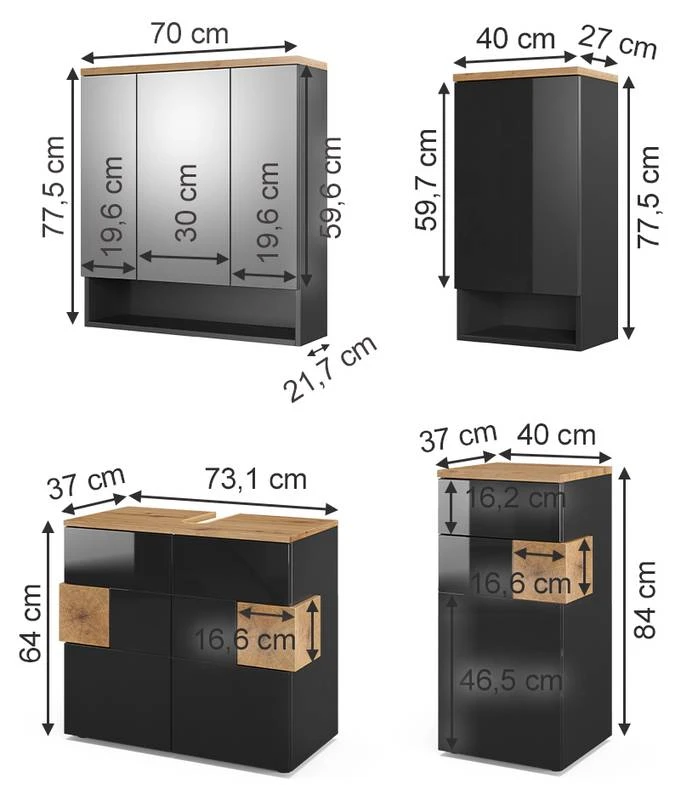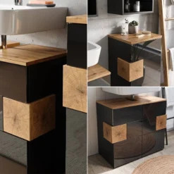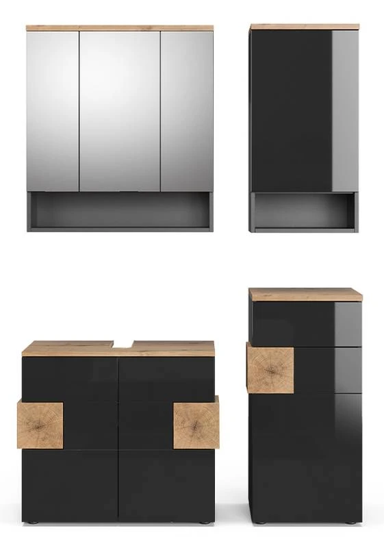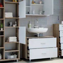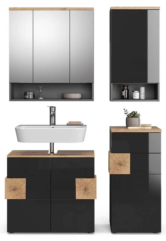 - Contenu de la livraison : • 1x meuble sous-vasque• 1x armoire de toilette • 1x meuble suspendu• 1x placardDécoration non incluse
