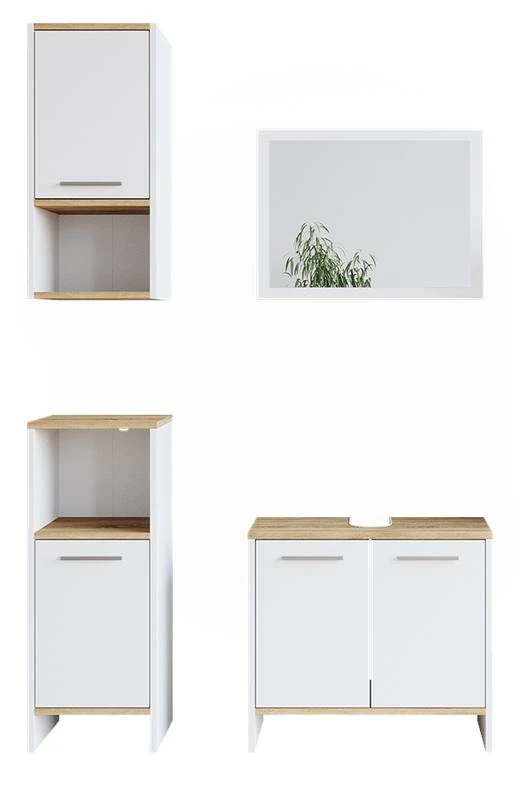 - Contenu de la livraison : • 1x miroir • 1x meuble lavabo• 1x meuble suspenduDécoration non incluse