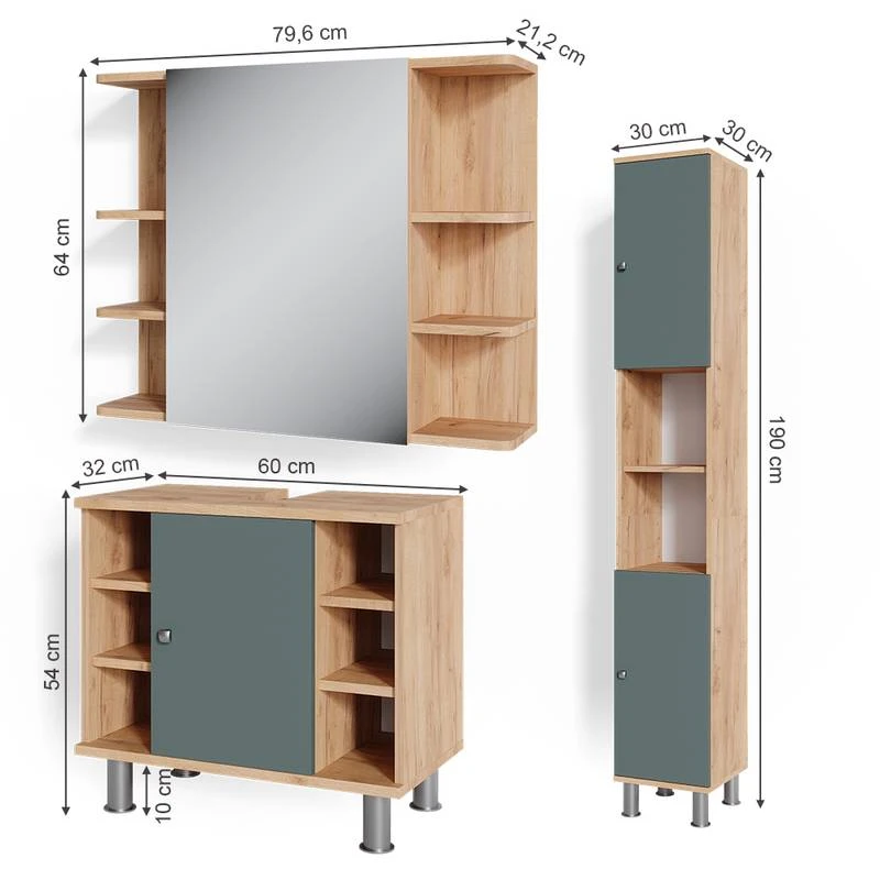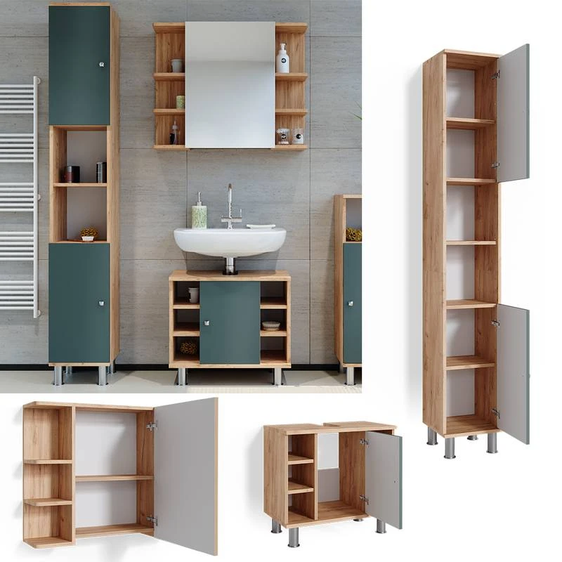 - Contenu de la livraison : • 1x Armoire de miroir• 1x Meuble vasque • 1x armoire hauteDécoration non incluse
