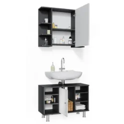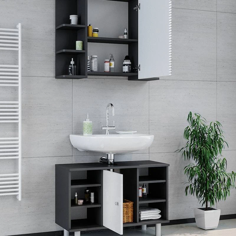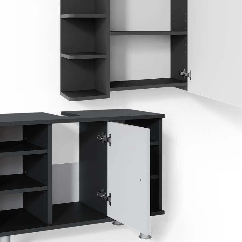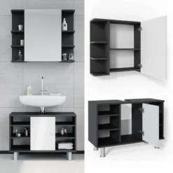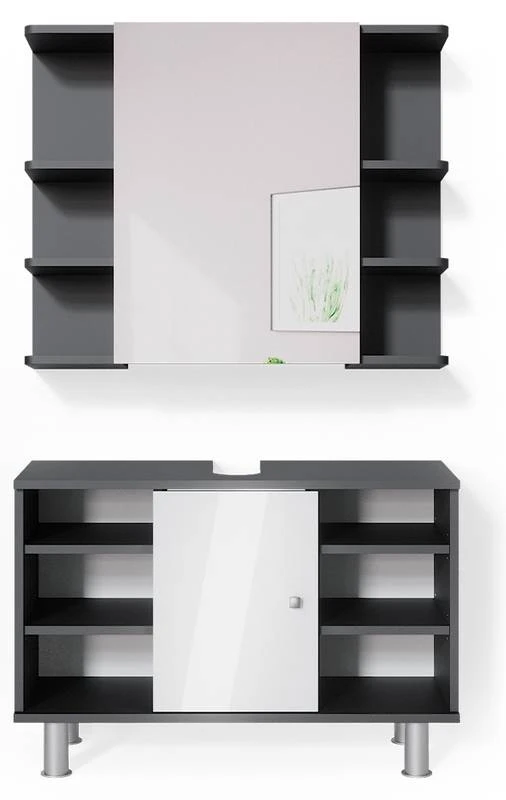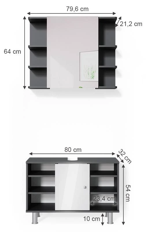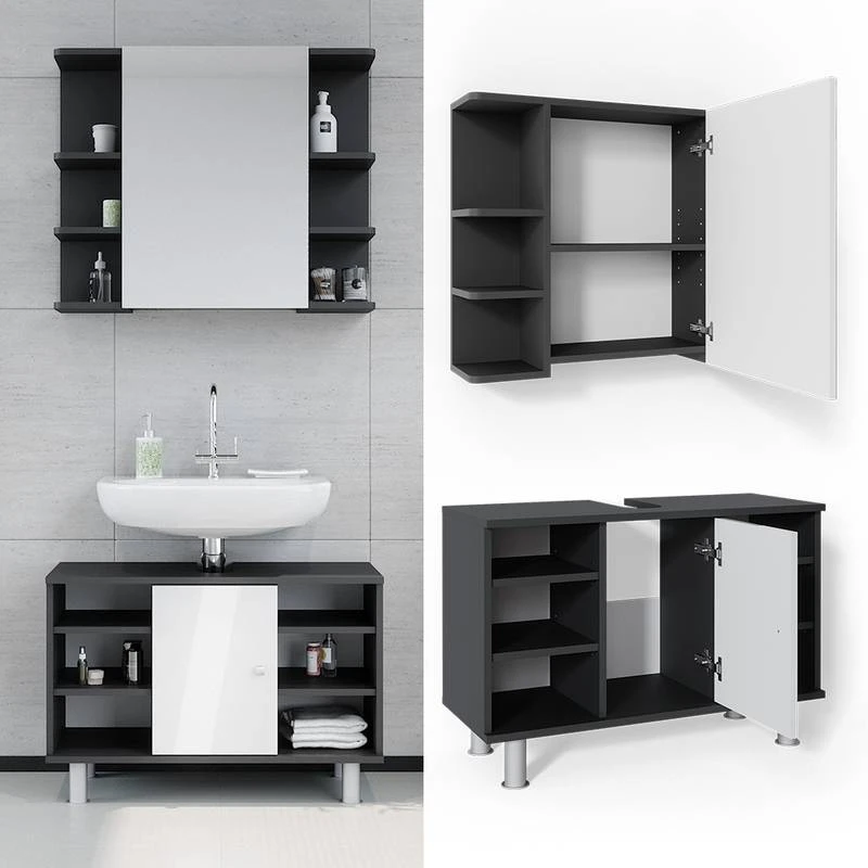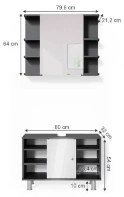- Contenu de la livraison : • 1x armoire de toilette• 1x meuble sous-vasqueDécoration non incluse