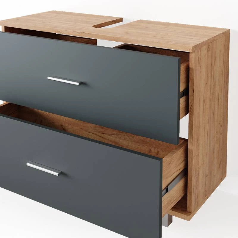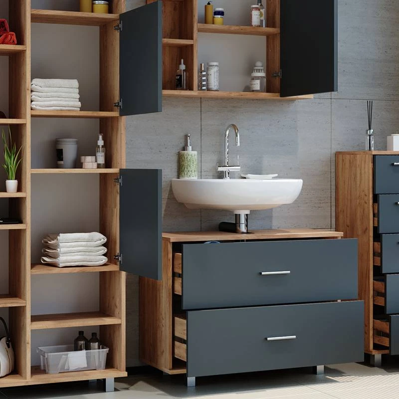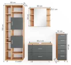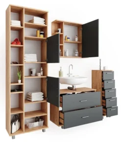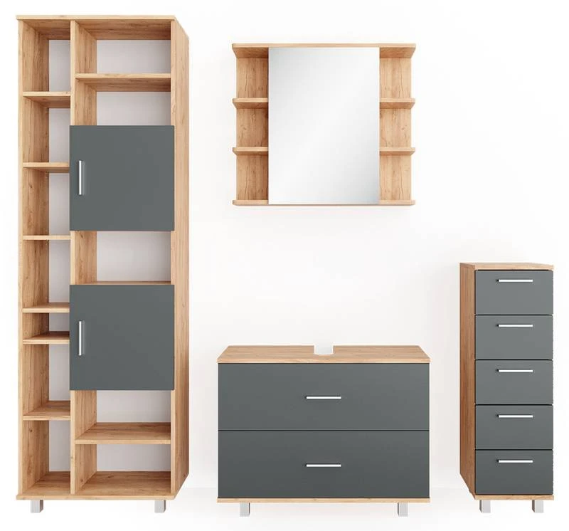 - Contenu de la livraison : • 1x armoire de toilette• 1x meuble sous-vasque• 1x chiffonnier• 1x placardDécoration non incluse