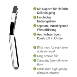 - Autres caractéristiques : La gamme innovante de pommes de douche WENKO impressionne par sa fonctionnalité, son design et sa qualité.